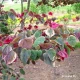 Un festival de couleurs ! Petit arbre au port légèrement pleureur pouvant atteindre 4 à 5 m de haut. Feuillage caduc, en forme de c?ur très coloré et panaché. Jeunes pousses rose vif. Floraison rose juste avant les feuilles. Exposition ensoleillée.
