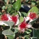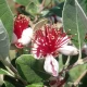 FEIJOALe Feijoa est un arbuste buissonnant, rustique et persistant qui offre une floraison originale et des fruits au goût exotique. En été, apparaissent des fleurs blanches aux étamines rouges très décoratives. Les pétales sont comestibles. Entre octobre et décembre, vous récolterez les fruits du goyavier du Brésil, verts, ovales à la saveur rappelant la fraise, la goyave et l’ananas.