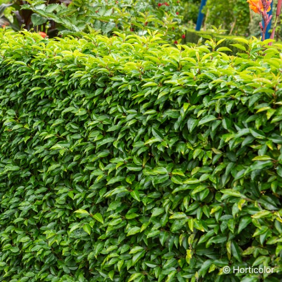 Elégant arbuste persistant au feuillage vert sombre porté par des rameaux rouges. Au printemps, apparaissent de longues grappes de fleurs blanc crème parfumées, suivies de baies rouges virant au noir. Une plante idéale pour former des haies décoratives toutes l'année ou sculpter en topiaire.