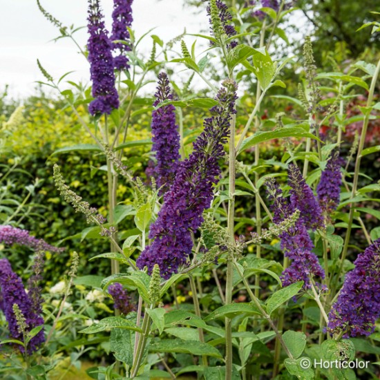 Cet arbre aux papillons forme un arbuste florifère et vigoureux au port dressé et souple, pouvant atteindre 4 m de haut. Ses rameaux robustes portent tout l’été de longs épis de fleurs bleu violacé à l’?il orangé. Floraison mellifère. Arbuste facile à vivre et rustique, idéal en fond de massif, en isolé, en groupe, en haie libre et champêtre.