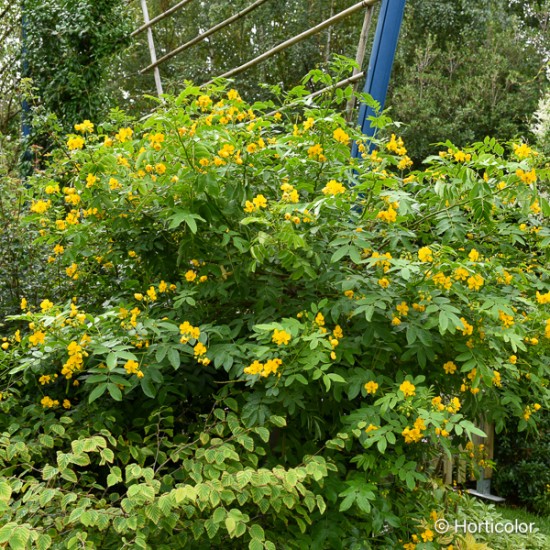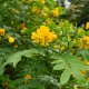 Le Cassia floribunda est un arbuste peu rustique de climat doux, apprécié pour sa très longue floraison estivale et automnale en belles grappes de fleurs jaune foncé.