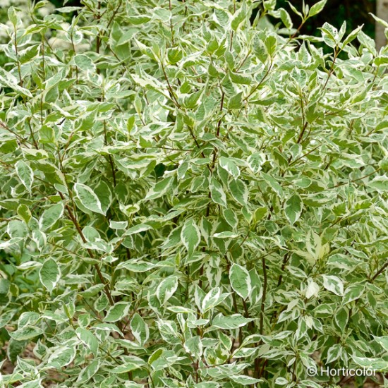 ARGENTEOMARGINATACet arbuste rustique au feuillage panaché vert et blanc sera du plus bel effet dans vos haies et vos massifs. Ce cornouiller blanc ‘Elegantissima’ ne perdra rien de sa splendeur en hiver, la chute des feuilles dévoilant d'étonnants rameaux rouges très décoratifs.