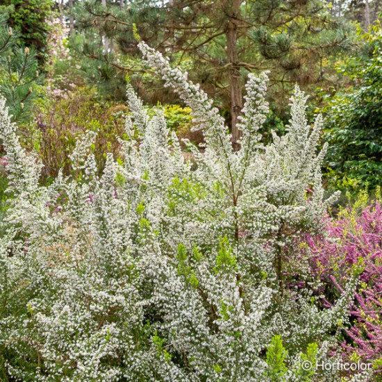 Arbuste compact et érigé. Floraison hivernale blanche et parfumée. Haie fleurie, massif.