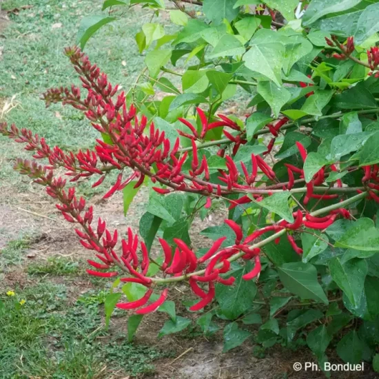 Arbuste à la floraison spectaculaire en très longues grappes rouges de juin à septembre. Feuillage caduc. Tiges épineuses. Hauteur : 3 m. Croissance rapide. Rustique jusqu'à -10°C. En isolé, massif ou potée (notamment en climat froid).