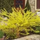 Végétation étalée de 0,70 m de haut, formée de branches érigées à 45°. Feuillage allongé vert clair. Floraison hâtive d'un joli jaune-pamplemousse. Bon développement dans tous les sols mais préfère les terres nutritives et fraîches. Formidable variété à utiliser comme couvre-sol d'espaces verts, de jardins ou de bacs.