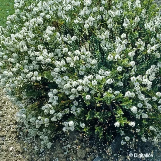 L'hebe 'Green globe' est surtout intéressant pour son feuillage persistant couleur vert vif. Avec sa végétation arrondie particulièrement compacte, elle est idéale pour vos potées et massifs. Floraison blanche en juillet-août. Sol humifère drainant.
