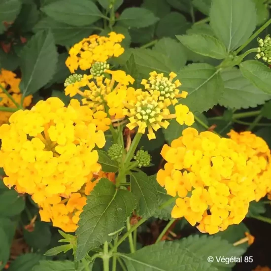 Nouvelle variété de lantana, vivace, rustique jusqu'à-12°C, appréciée dans les massifs et les potées estivales pour son abondante floraison jaune doré. Très facile de culture.