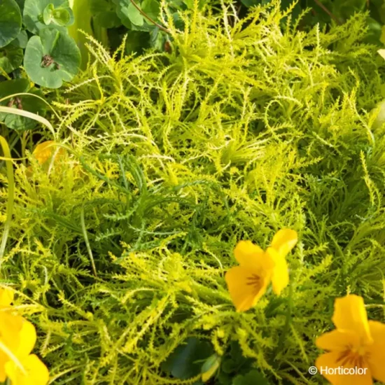 La santoline à feuilles de romarin embaumera votre jardin par son feuillage persistant doré aromatique. Ses fleurs jaune citron de juin à août attirent les insectes. Plante adaptée aux bords de mer, se plait dans des sols pauvres et secs.
