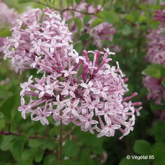 Variété de lilas à petites feuilles compacte, à la floraison rose au printemps, légèrement remontant en septembre.