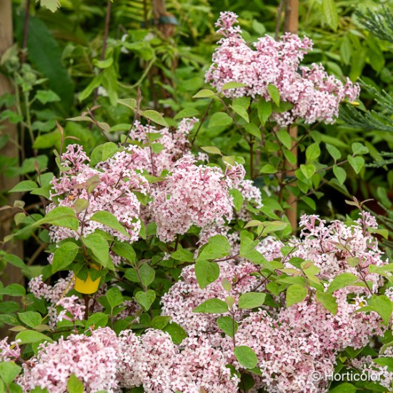 La généreuse floraison printanière de ce lilas forme des bouquets parfumés de fleurs roses, remontantes en fin d'été. C'est une plante adaptée aux petits jardins et qui embaume les terrasses.