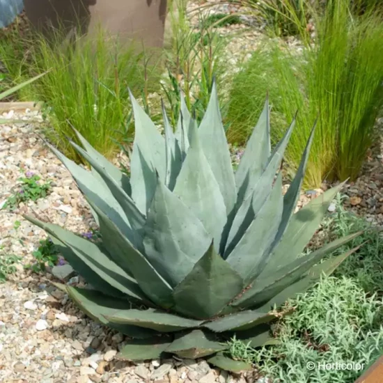Agave parryi forme une belle rosette compacte de feuilles gris bleu de 30 cm de long. Les feuilles sont bordées d’épines espacées et recourbées en crochet. Cette plante succulente peut atteindre 50 cm de haut et jusqu’à 1 m de large. Rustique jusqu’à -10°C. Plantez cet agave en pleine terre ou en pot au soleil dans un endroit abrité et dans un sol bien drainé. En isolé, massif, rocaille, talus.