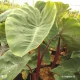 Colocasia à moyen développement (hauteur 1,25 m - largeur 90 cm) et au feuillage vert veiné de bleu et à tiges rouges. Rustique jusqu'à -15°C. Vivace idéale en massif ou dans un grand bac. Aime les sols humides sauf en hiver.
