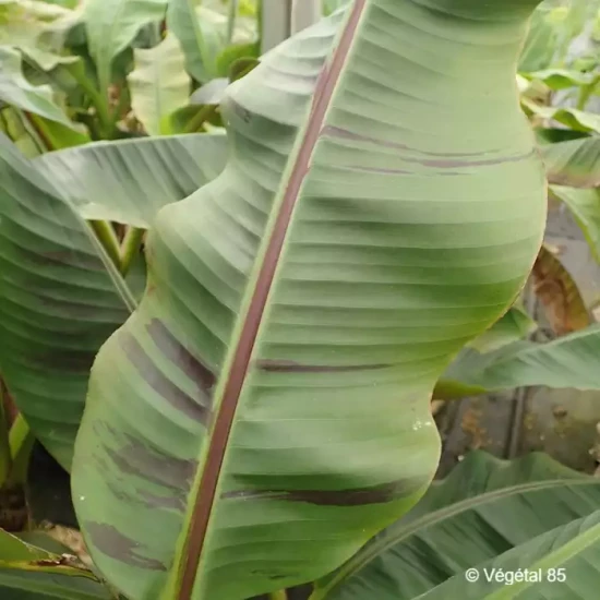 Un bananier rustique (-12°C) au look exotique et original avec ses feuilles vertes et pourpre. En climat chaud, il fleurit et fructifie : les bractées des inflorescences sont roses et ses fruits sont sans intérêt gustatif. Il peut atteindre 2 à 4 m de haut.