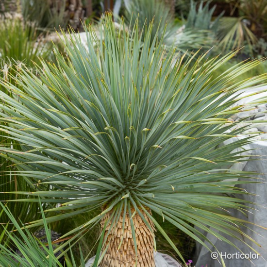 Graphisme et beauté épurée sont au rendez-vous avec ce Yucca rostré ! Magnifique rosette parfaitement ronde de feuilles étroites, raides et bleutées surmontant le tronc qui peut atteindre plusieurs mètres de haut. Discrète floraison blanche estivale. Croissance très lente. Plantez au soleil en sol bien drainé. Rustique -15°C.