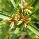 Plante vivace en touffe, à feuilles persistantes en ombelle au bout des tiges. Peut atteindre 1 m. Elle est utilisée pour décorer les bassins. Placer à la lumière, mais sans soleil direct. Arroser quotidiennement et laissez tremper. Vaporiser souvent. Engrais tous les 15 jours. Placer à l'intérieur ou à l'extérieur.