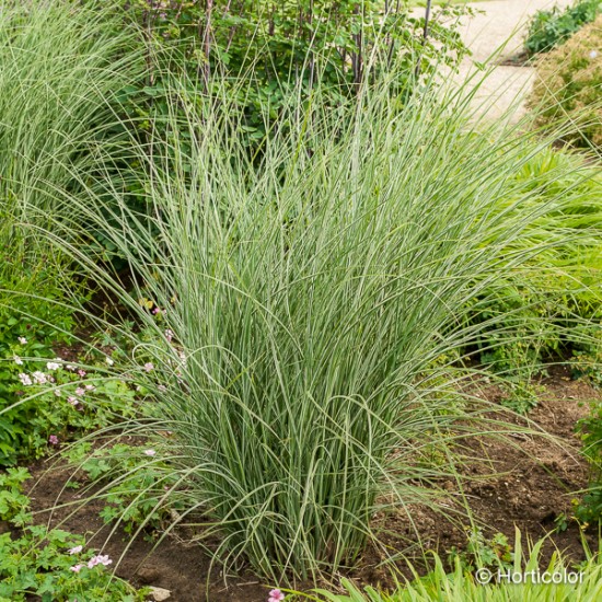 Graminée, en touffe de 1,5 m de haut, au feuillage fin, gris argenté. Magnifique en isolé.