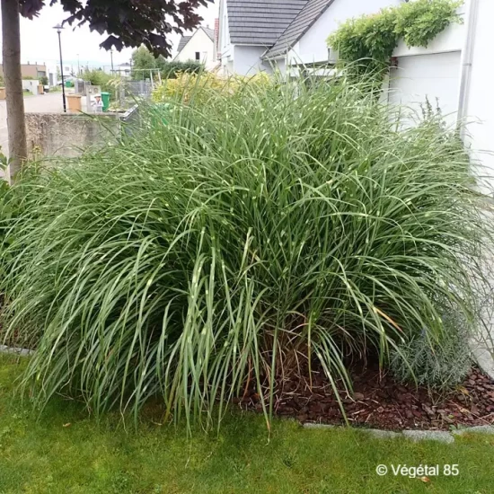 Graminée, en touffe de 1,8 m de haut, au feuillage vert zébré de jaune crème. Magnifique en isolé ou en fond de massif. Facile à cultiver.