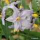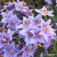 Grande grimpante à floraison violette à c?ur jaune, de juin à septembre. Feuillage vert, caduc.