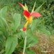 Canna dont les gros rhizomes sont comestibles. Jolie floraison de fin d'été, rouge orange et jaune. C'est un rhizome à garder à l'abri de l'excès d'humidité et à l'abri du gel l'hiver.