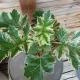 Vivace originale formant une grande touffe de grandes feuilles découpées, vertes panachées de blanc crème. Floraison estivale blanche à reflets roses (juin à août). Rustique jusqu’à -15°C. En isolé ou en massif. Convient dans les jardins de bord de mer.
