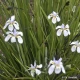 Iris à feuillage persistant aux jolies fleurs blanches, violettes, et jaunes.