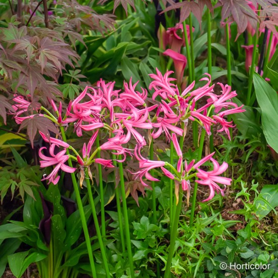 Vivace bulbeuse particulièrement appréciée pour sa floraison tardive. Fleurs roses automnales. Massif, isolé ou pot. A planter en groupe.